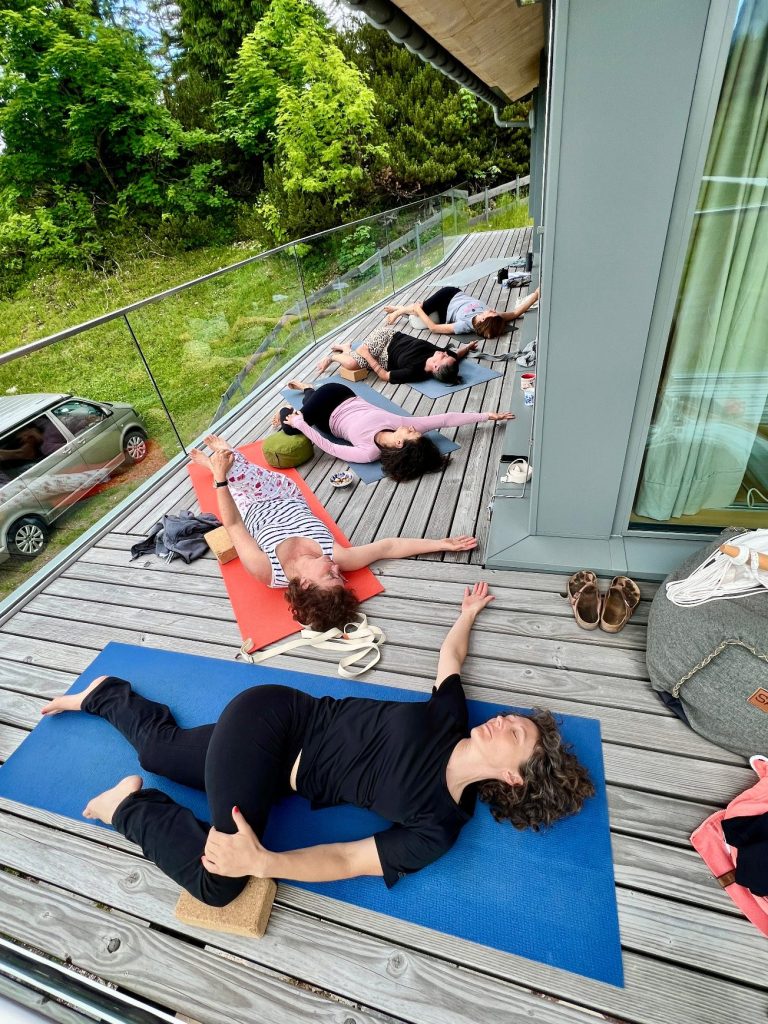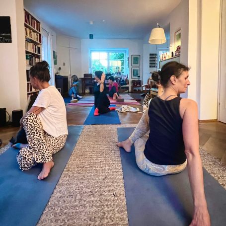 Zuerst habe ich in einem kleinen Studio in München regelmäßige Yogastunden gegeben, inzwischen liegt mein Fokus jedoch auf Privatstunden, Kleingruppen, Firmenangeboten und Vertretungsstunden nach individueller Absprache.